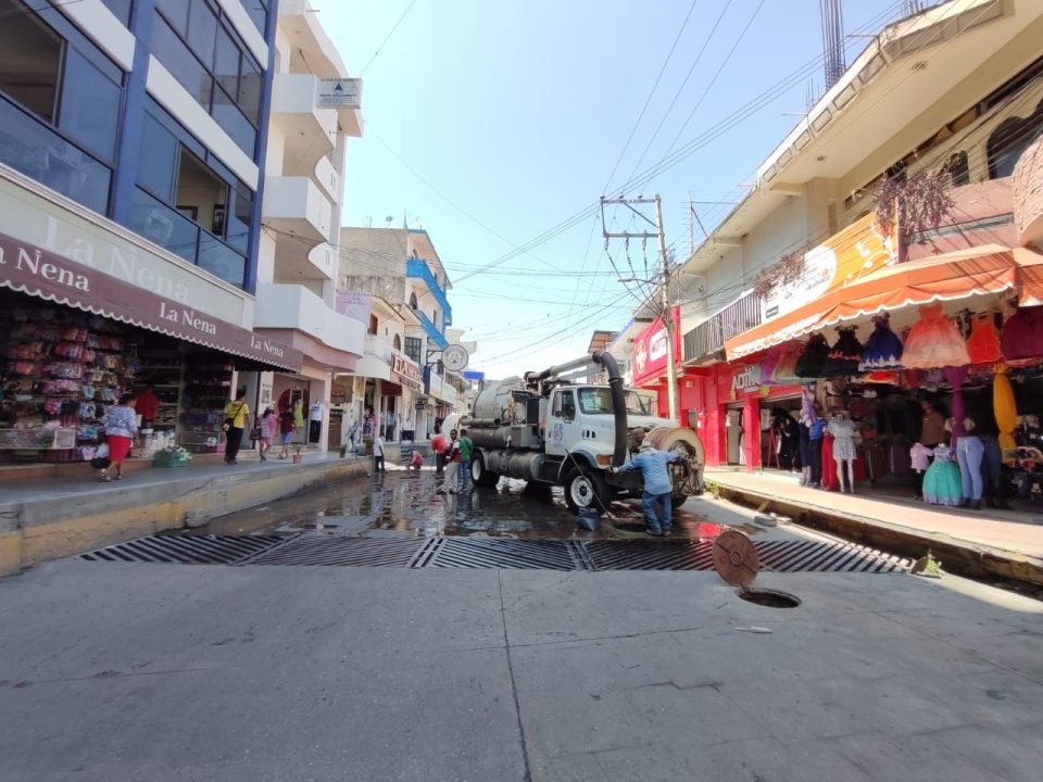 Los trabajos se efectúan en una longitud aproximada de 450 metros, con el equipo hidroneumático Vactor, para mejorar este servicio básico en beneficio de las familias de Santiago Pinotepa Nacional.