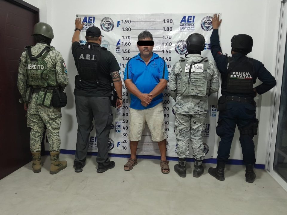 Como resultado de esta intervención, las fuerzas de seguridad detuvieron al masculino identificado con las iniciales A.S.A., de 61 años de edad. Asimismo, se decomisaron 50 cartuchos de calibre 9 milímetros, marca Sedena; 44 cartuchos de calibre .38 especial, marca Águila; así como 19 bolsas de nylon; 14 con sustancia granulada y cinco con hierba seca.