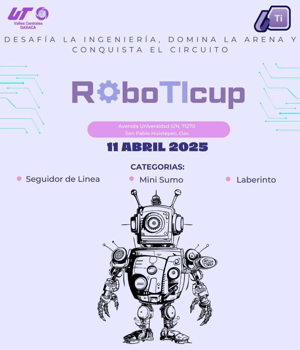 San Pablo Huixtepec, Oax. 4 de abril de 2025.- La Universidad Tecnológica de los Valles Centrales de Oaxaca (UTVCO) celebrará el próximo 11 de abril la RoboTiCup 2025, torneo de robótica que reúne lo mejor de la tecnología e innovación de la institución.