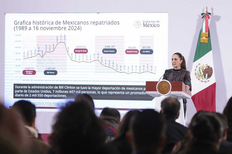 Ciudad de México a 28 de enero de 2025.- La Presidenta de México, Claudia Sheinbaum Pardo, destacó que, de acuerdo con datos preliminares, del 2018 al 27 de enero de 2025, se estima una reducción del 27 por ciento en el promedio diario de víctimas de homicidio doloso, lo que, aseveró, es resultado de la coordinación de todas las dependencias, a través de la Estrategia Nacional de Seguridad.