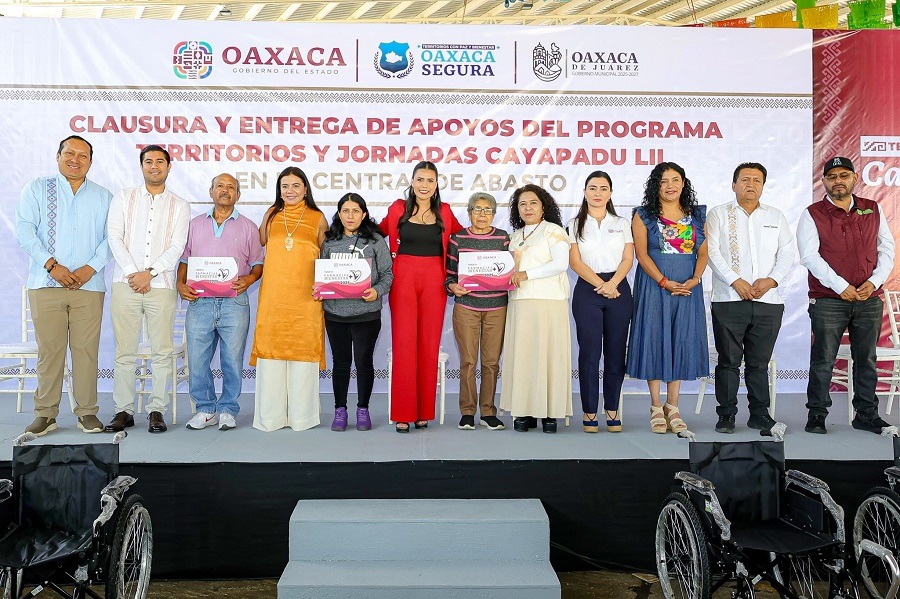 Oaxaca de Juárez, Oax. 3 de diciembre de 2025.- Como parte de la estrategia Territorios y Jornadas Cayapadu Lii del programa Oaxaca Segura, el Gobierno del Estado entregó apoyos a comerciantes de la Central de Abasto, ubicada en el municipio capitalino.