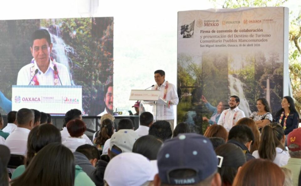 San Miguel Amatlán, Oax. 18 de abril de 2026.- En un acto memorable, el Gobernador Salomón Jara Cruz y el director general del Fondo Nacional de Fomento al Turismo (Fonatur), Sebastián Ramírez Mendoza, firmaron un convenio de colaboración para impulsar a los Pueblos Mancomunados como Destino de Turismo Comunitario.