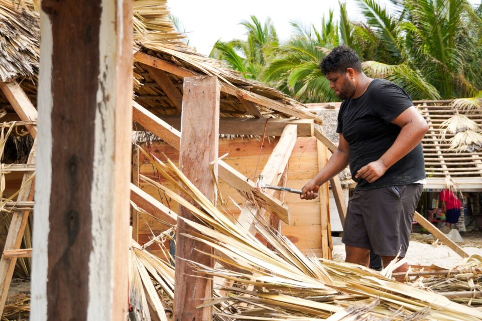 Villa de Tututepec de Melchor Ocampo, Oax. 24 de junio de 2025.- El Consejo Estatal de Protección Civil, a través de la Secretaría de Desarrollo Económico (Sedeco), desplegó una brigada de 55 personas en la playa Cerro Hermoso, perteneciente al municipio Villa de Tututepec de Melchor Ocampo para apoyar en labores de limpieza y acompañamiento a la población tras el paso del huracán Erick.