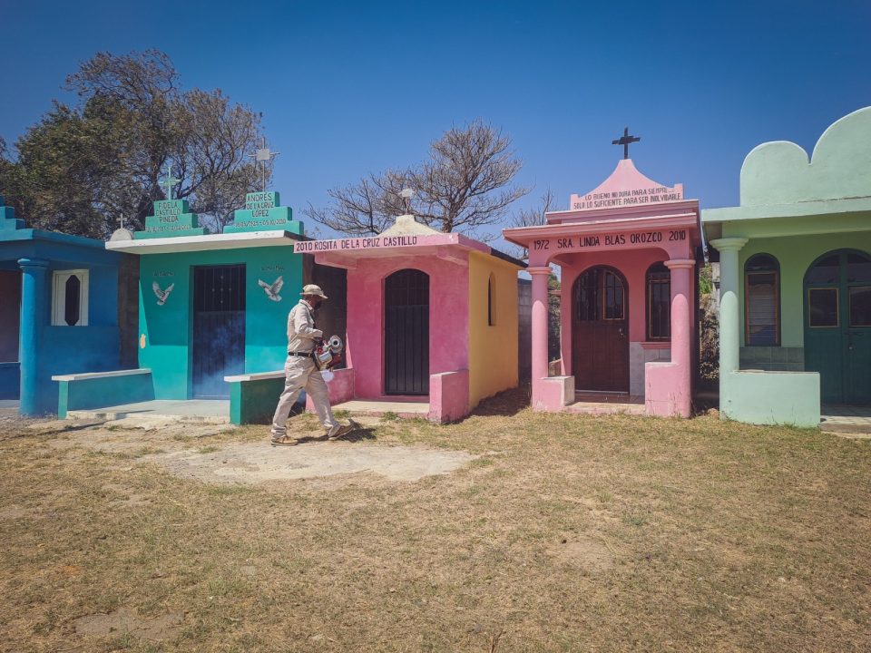 Juchitán, Oaxaca.- Comprometidos con la encomienda del presidente municipal el Lic. Miguel Sanchez Altamirano, de velar por el cuidado y la salud de la población, la Dirección Municipal de Salud trabajando en conjunto con la Jurisdicción Sanitaria No.02 Istmo, realizaron trabajos de fumigación en el Panteón de la Agencia Municipal de Chicapa de Castro.
