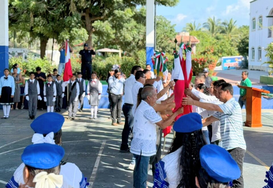 En las acciones que promueven el respeto a los Símbolos Patrios y la formación cívica en las escuelas, el IEEPO, a través de la Delegación Regional Costa–Puerto Escondido, abanderó a 19 instituciones educativas, en el municipio de Santa María Tonameca.