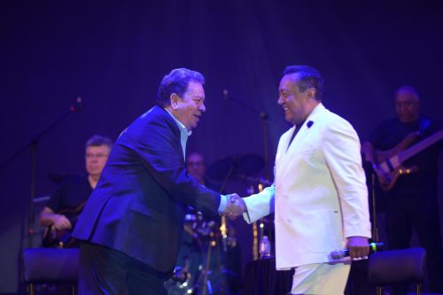 Pero el verdadero broche de oro de la noche es la presentación de los inconfundibles Jorge Muñiz y Carlos Cuevas, quienes conquistan a los asistentes con sus boleros y baladas, demostrando una vez más su talento y carisma en el escenario.