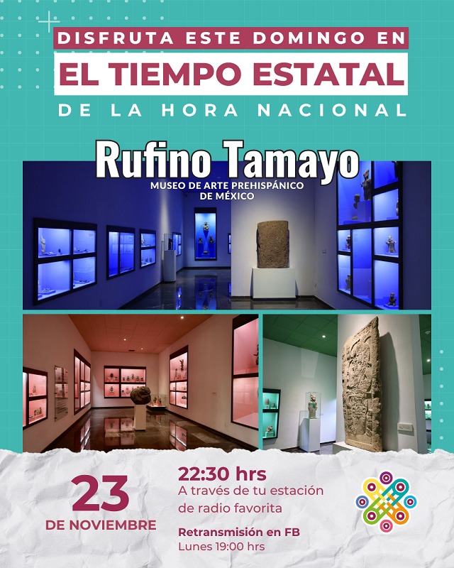Oaxaca de Juárez, Oax. 22 de noviembre de 2025.- La historia y el invaluable acervo del emblemático Museo de Arte Prehispánico de México “Rufino Tamayo”, ubicado en la capital oaxaqueña, se compartirá este domingo 23 de noviembre, a partir de las 22:30 horas, en el programa radiofónico El Tiempo Estatal de la Hora Nacional.