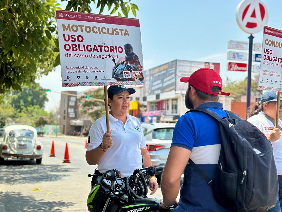 Oaxaca de Juárez, Oax., 1 de abril de 2025.- Con el objetivo de reducir accidentes y fomentar una movilidad más segura en las calles y carreteras, la Policía Vial Estatal promueve el respeto a las normas de tránsito y el uso adecuado del equipo de seguridad, tanto para automovilistas como para motociclistas.