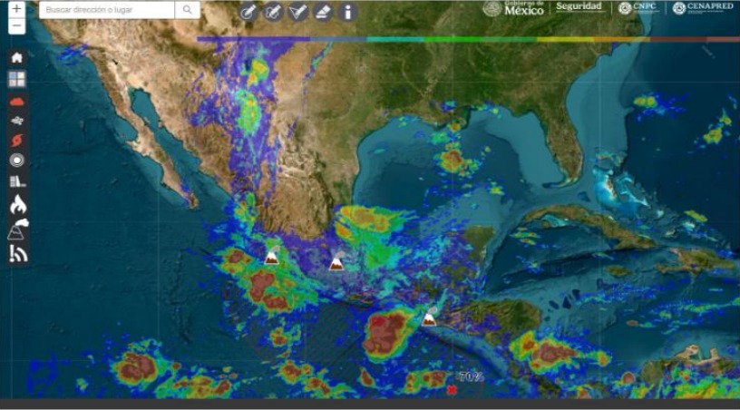 Este fenómeno se encuentra a cientos de kilómetros al sur de México y de las costas de Centroamérica, interactuando con una vaguada monzónica muy activa, lo que refuerza las condiciones de inestabilidad atmosférica en la entidad.