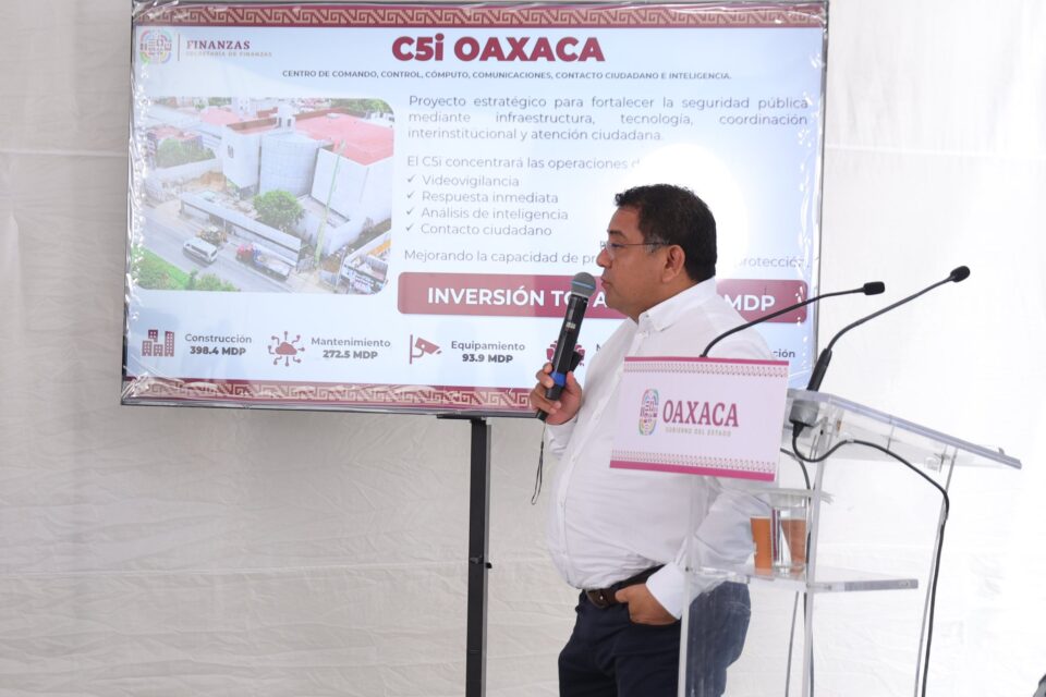 Durante la inauguración del Centro de Control, Comando, Comunicación, Cómputo e Inteligencia (C5i) de Oaxaca, el secretario de Finanzas, Farid Acevedo, subrayó que la obra representa una inversión histórica y estratégica para el fortalecimiento de la seguridad pública en el estado, con un monto total de 773 millones de pesos, de los cuales más de 650 millones provienen del gobierno estatal.