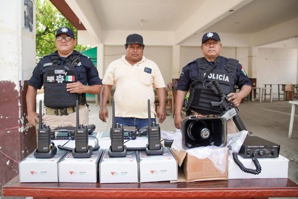 La dotación incluyó cuatro radios portátiles, dos radios bases, una antena VHF, cable RG-8, micrófonos marca Kenwood y una sirena para patrulla. Durante la entrega, el comisario David Vásquez destacó que estos dispositivos permitirán reforzar la operatividad y comunicación interna del cuerpo policiaco, contribuyendo a una atención más ágil y eficiente de las situaciones que se presenten en la agencia.