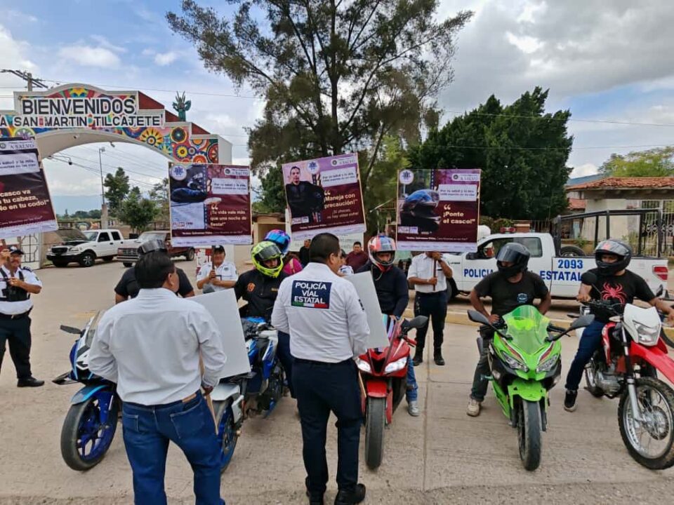 San Martín Tilcajete, Oax., 1 de octubre de 2025.- A fin de fomentar una movilidad más segura y reducir los accidentes de tránsito, la Policía Vial Estatal puso en marcha la estrategia nacional “Piensa, Lleguemos a Salvo” en San Martín Tilcajete y Miahuatlán de Porfirio Díaz, dirigida a personas motociclistas.