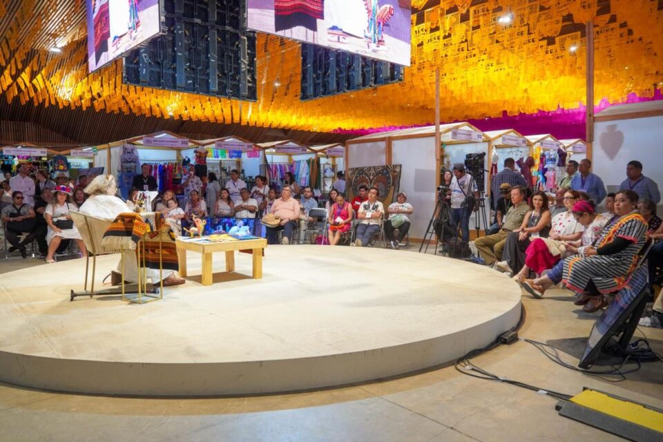 Candida Fernández, quien también fue directora de Fomento Cultural Banamex por más de 30 años, conversó también con maestras y maestros artesanos a quienes reconoció su labor como guardianes de sus culturas, e intercambió puntos de vista y reconocimientos por sus trayectorias.
