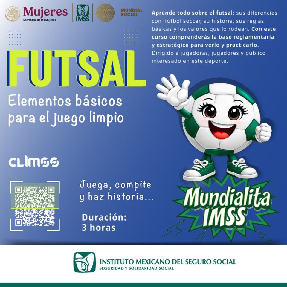 El Instituto Mexicano del Seguro Social (IMSS) en Oaxaca llevará a cabo la ceremonia inaugural de la fase estatal del “Mundialito IMSS 2026” este sábado 28 de febrero a las 08:00 horas en la modalidad Futsal Femenil, en el Parque Primavera Oaxaqueña.
