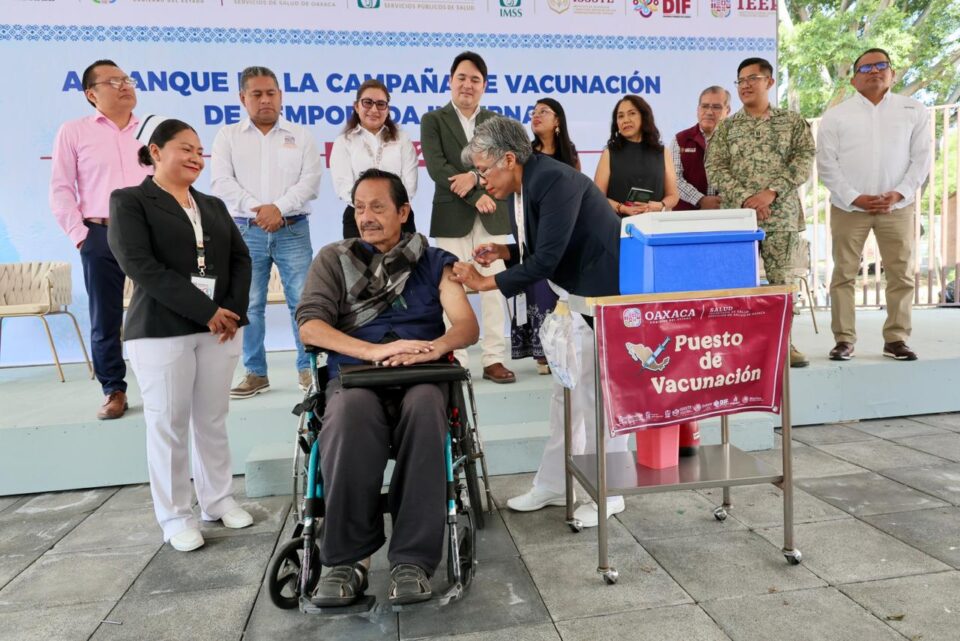 En presencia del coordinador del IMSS-Bienestar Oaxaca, Jesús Alejandro Ramírez Figueroa y representantes de las instituciones de salud, el titular de SSO subrayó que el biológico es una herramienta probada, segura y eficaz para prevenir complicaciones graves durante la temporada invernal.