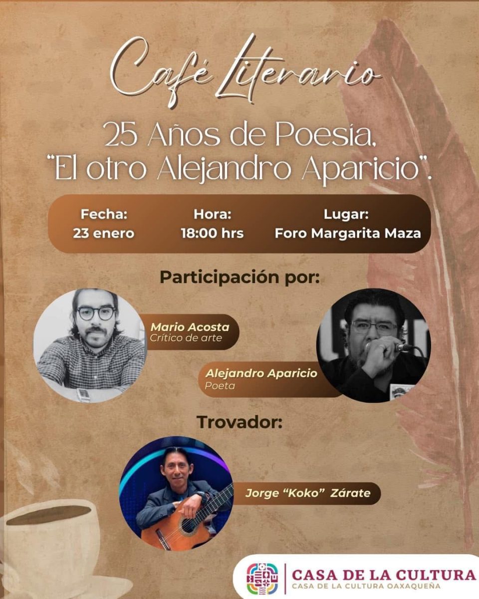 El jueves 23 de enero a las 18:00 horas en el Foro Margarita Maza Parada, se realizará el proyecto “Café Literario”, con el objetivo de promover la lectura en todos los ámbitos, por medio de grupos afines en los que las y los participantes sientan la confianza de conectar, compartir versos y café.