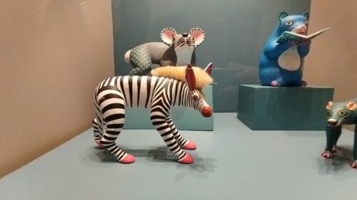 La muestra comprende este pequeño león, hasta algunas de las obras emblemáticas y deslumbrantes de los herederos de Manuel: sus hijos Isaías y Angélico Jiménez Hernández y de su nieto, Eleuterio Isaías Jiménez Carrillo.