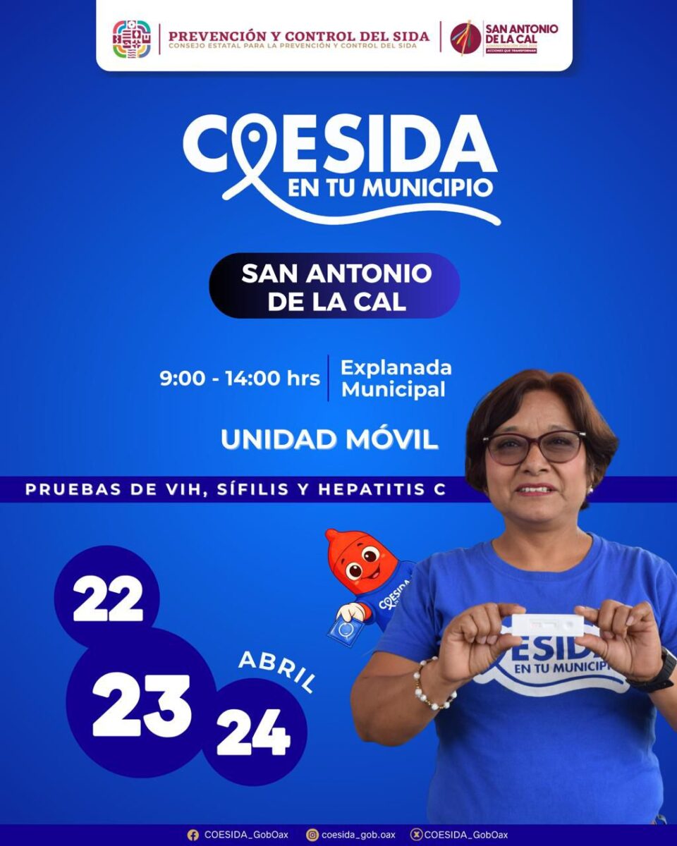 El Consejo Estatal para la Prevención y Control del Sida (Coesida) llevará a San Antonio de la Cal la jornada “Coesida en tu municipio”, en donde otorgará diversos servicios a la población en general.