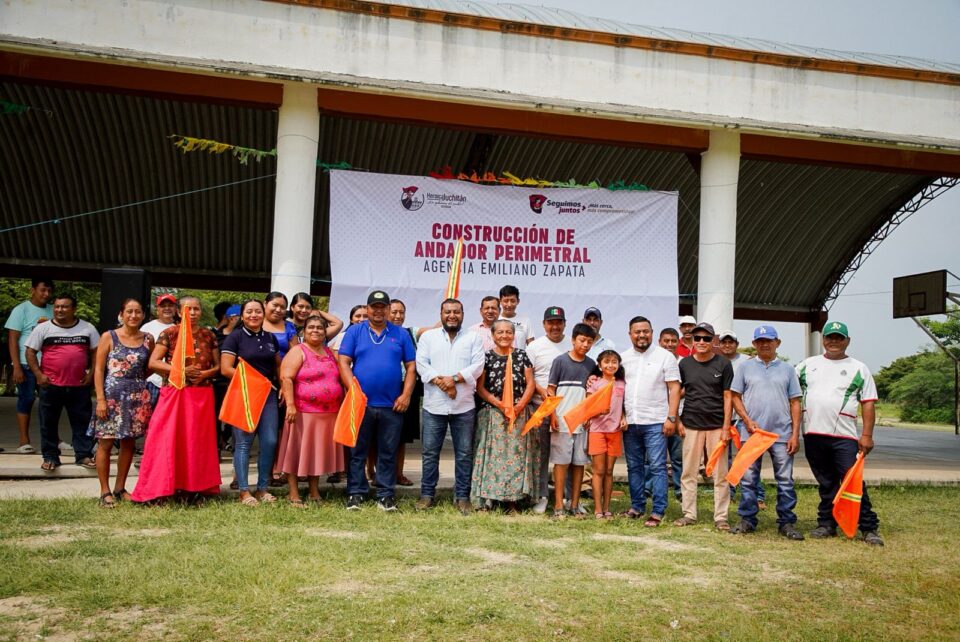 El gobierno juchiteco continúa transformando el rostro de la agencia municipal Emiliano Zapata, impulsando obras que mejoran su infraestructura y fortalecen la convivencia social. En este sentido, el presidente Miguel Sánchez Altamirano, junto al agente Aurelio Osorio Vásquez, dio el banderazo de inicio a la construcción del andador perimetral del parque central, un proyecto que propiciará la convivencia y recreación de niñas, niños, personas mayores y visitantes.
