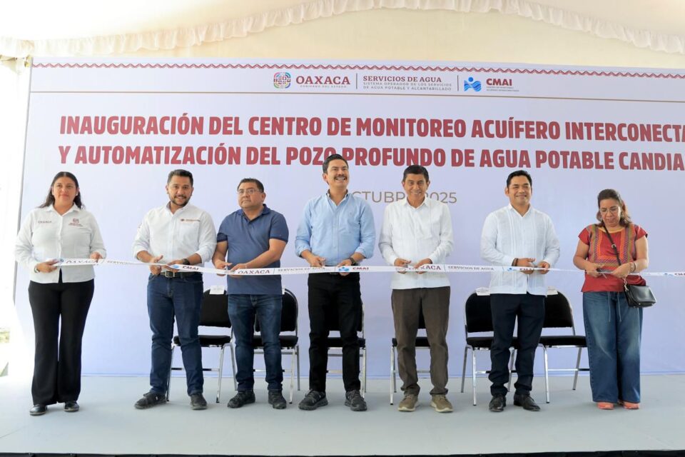 Oaxaca de Juárez, Oax. 12 de octubre de 2025.- El Gobernador Salomón Jara Cruz inauguró el Centro de Monitoreo Acuífero Interconectado (CMAI) en la agencia municipal Candiani, que moderniza la distribución del agua potable en la capital oaxaqueña y garantiza su manejo eficaz.