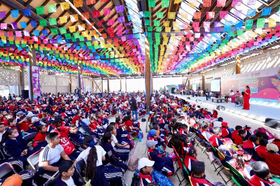 El punto de encuentro fue el recinto ferial del Parque Primavera Oaxaqueña Cho Ndobá, donde los cuentos permitieron establecer un puente de comunicación entre la niñez, el Mandatario estatal y la Presidenta Honoraria.