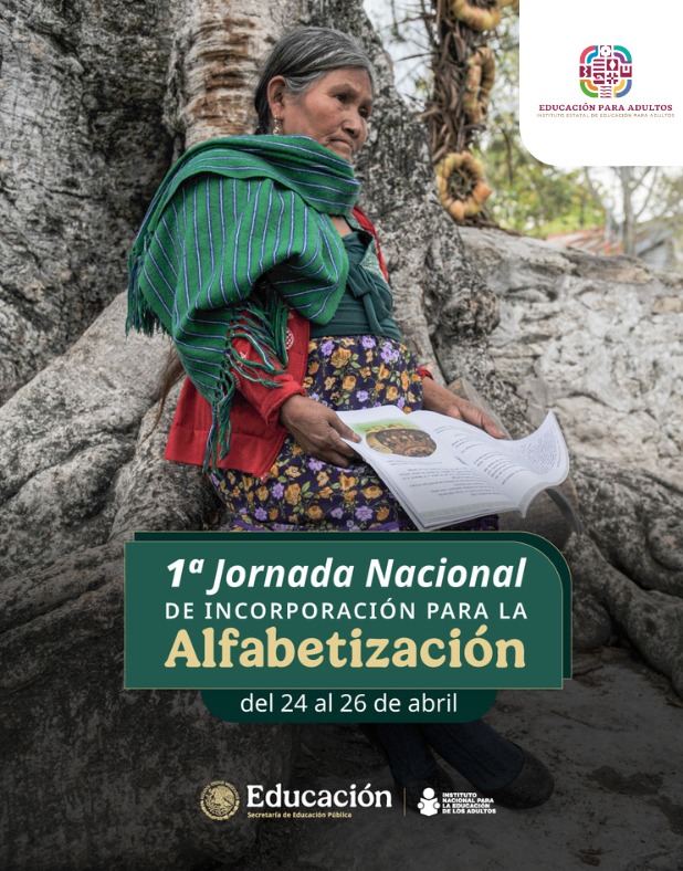 El Instituto Estatal de Educación para Adultos (IEEA) invita a participar en la 1ª Jornada Nacional de Incorporación para la Alfabetización, del 24 al 26 de abril, con la finalidad de apoyar a personas jóvenes y adultas en el aprendizaje de la lectura y escritura.