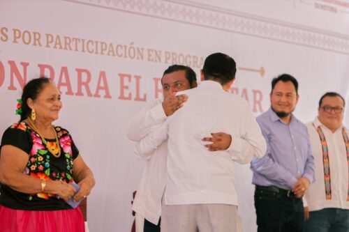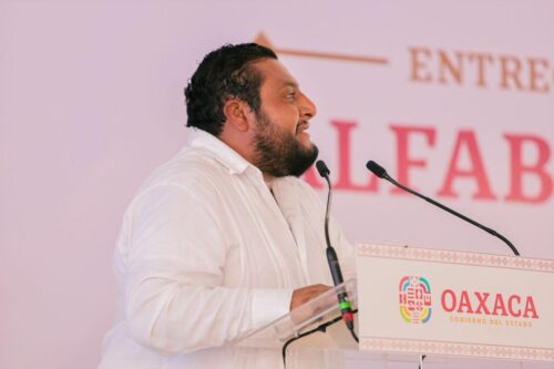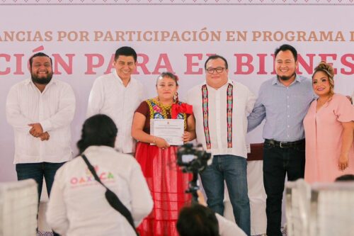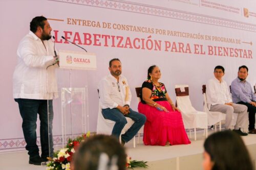 Juchitán, Oax.-Con su enorme esfuerzo por aprender y contribuir al desarrollo del país, ustedes son también ‘soldados de la patria’, señaló el presidente Miguel Ángel Sánchez Altamirano, al dar la bienvenida en la entrega de constancias a 287 graduados del programa «Alfabetización para el Bienestar», en el Parque Heliodoro Charis Castro, con la presencia del Gobernador Salomón Jara Cruz.