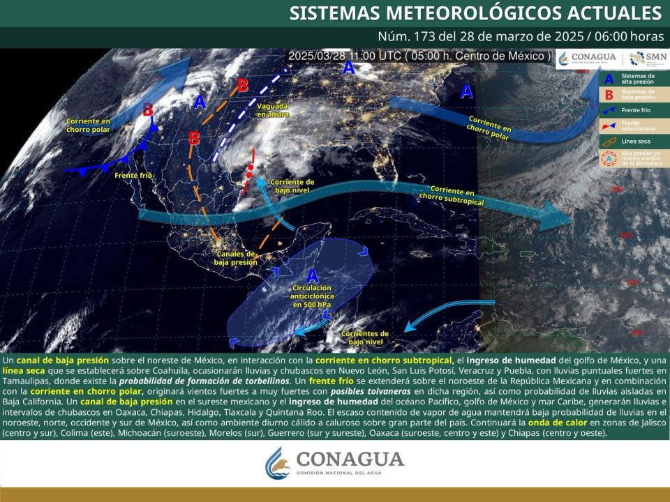De acuerdo con el pronóstico del tiempo emitido por la Comisión Nacional del Agua (Conagua), por la tarde soplarán vientos del sur y sureste con rachas ocasionales que pueden generar remolinos.