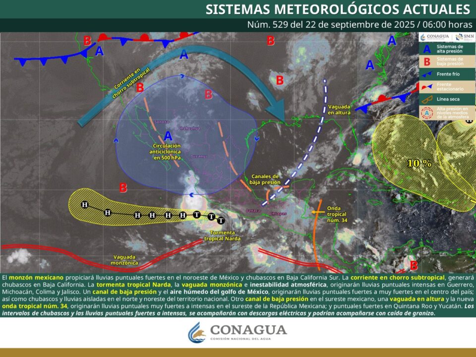 Estos sistemas se derivan del paso de la tormenta tropical Narda y sus amplias bandas nubosas combinadas con la vaguada monzónica.