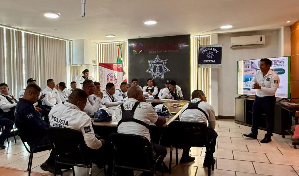 Oaxaca de Juárez, Oax., 25 de octubre de 2025.- En el marco del Día Naranja, que se conmemora el día 25 de cada mes para generar conciencia y prevenir la violencia contra mujeres y niñas; elementos de la Policía Vial Estatal participaron en una plática sobre Masculinidades Positivas.