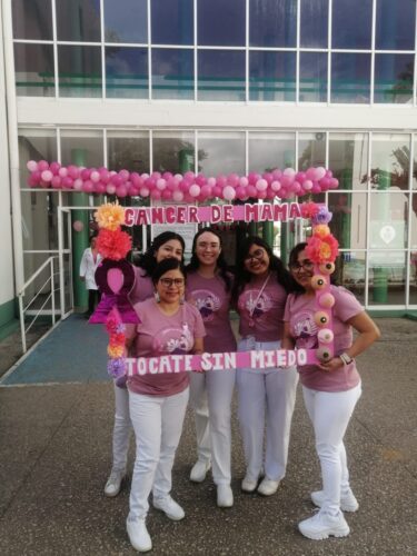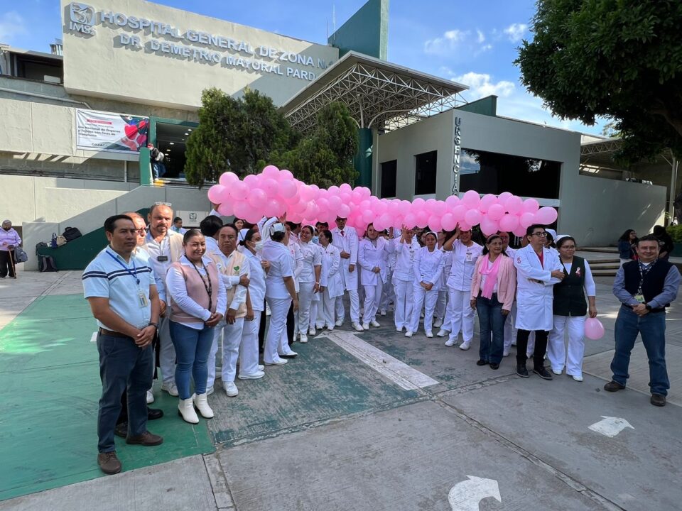 Personal médico y de Enfermería del Hospital General de Zona (HGZ) No. 1 y la Unidad de Medicina Familiar (UMF) No. 65, así como la UMF No. 1, del Instituto Mexicano del Seguro Social (IMSS) en Oaxaca realizaron un Lazo Humano Rosa, como parte de las actividades del Mes de Sensibilización sobre el Cáncer de Mama, campaña «¡Te toca! Tú 1 + 1» cuyo objetivo es visibilizar y detectar oportunamente padecimientos oncológicos.