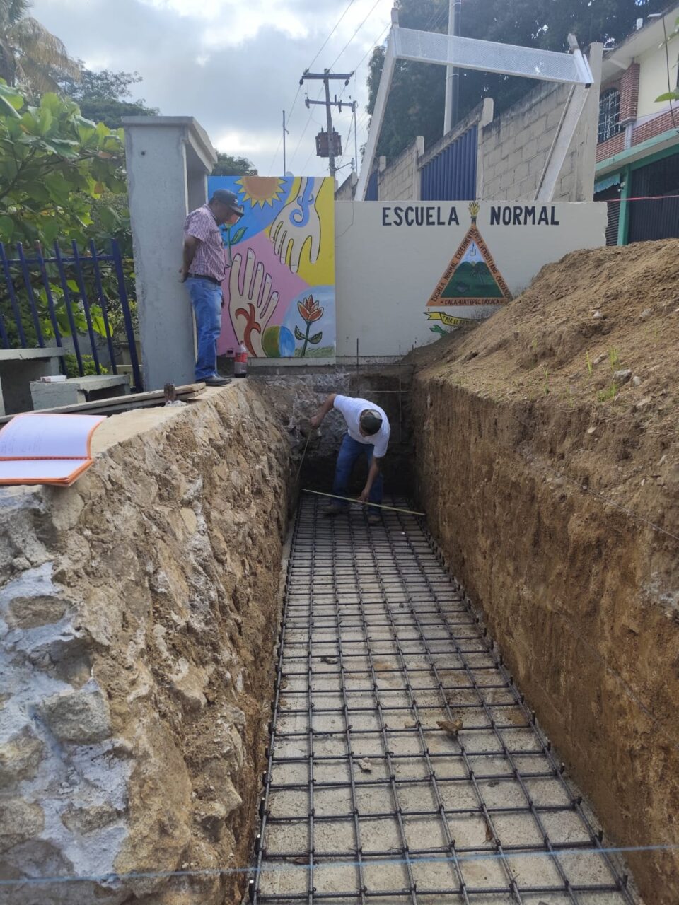 En la Escuela Normal Experimental “Presidente Venustiano Carranza”, ubicada en San Juan Cacahuatepec, región Costa, autoridades del IEEPO llevaron a cabo la supervisión técnica de los trabajos de mantenimiento en este plantel formador de docentes, como parte de la política de territorio que impulsa el gobernador Salomón Jara Cruz y por encomienda del director general, Emilio Montero Pérez