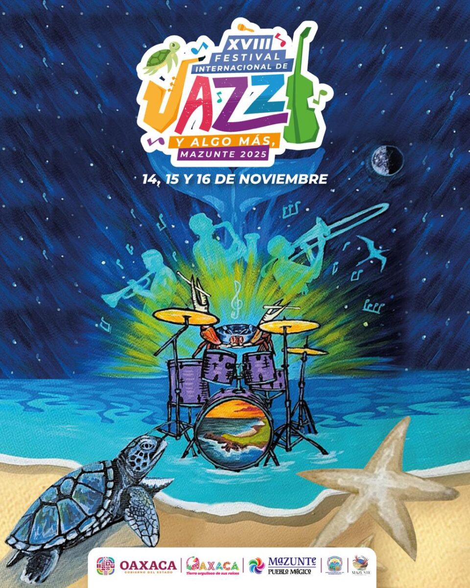 Oaxaca de Juárez, Oax. 13 de noviembre de 2025.- El Pueblo Mágico de Mazunte ya está listo para el XVIII Festival Internacional de Jazz y Algo Más, que contempla conciertos, actividades culturales y deportivas del 14 al 16 de noviembre.