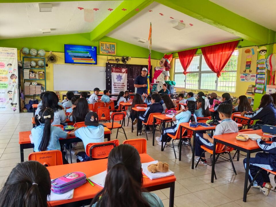 La atención se brindó al alumnado de nivel preescolar, primaria y secundaria, con talleres como Conozco y controlo mis emociones, Señales de tránsito, semáforo y 911.
